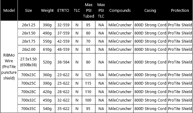 RiBMo is the latest addition to Panaracer's urban tire line. Aside from a plethora of sizes, the news on RiBMo is ProTite puncture resistance technology. ProTite provides 24% greater puncture resistance over our PT technology. Combine that with durable yet supple Mile Cruncher compound and you've got the best urban tire for every need.