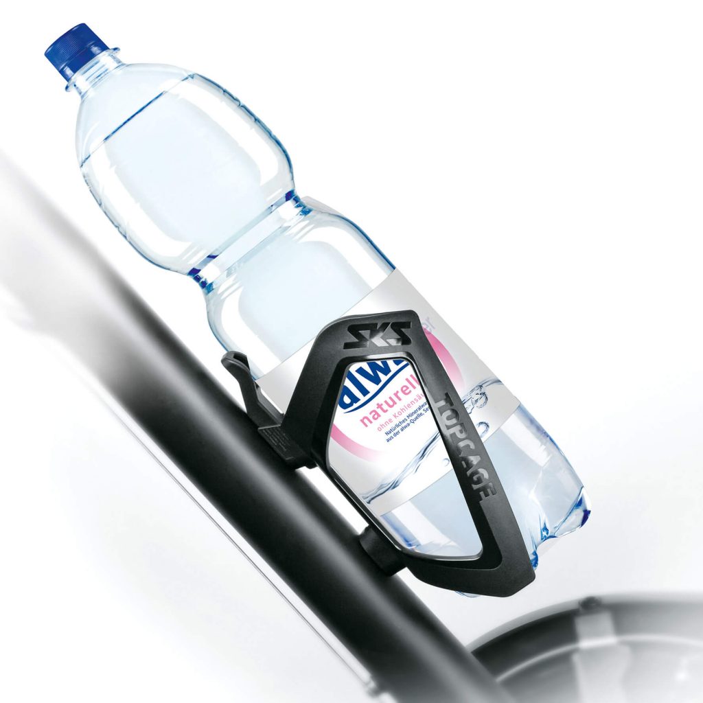 Thanks to the rounded edges, the drinking bottle can be easily inserted and removed. The revised hook ensures that a wide variety of bottle shapes can be held securely in place and thanks to the flexible material, the bottle holder is also suitable for standard 1.5 litre PET bottles.